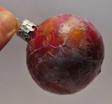 Als de kerstbal helemaal is bedekt met Decopatch brengt u rondom nog 1 laag vernislijm aan om de kerstbal zo glad mogelijk af te werken.